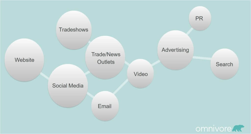 This graphic illustrates how content can be disseminated throughout multiple channels: